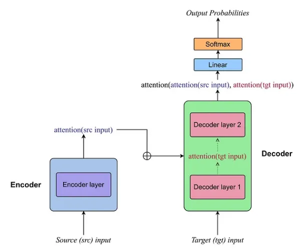 为清楚起见,我将使用符号源输入来指代编码器的输入(西班牙语的句子),使用目标输入来指代解码器中引入的预期输出(英语的句子)。该符号将在本文的其余部分保持一致。
