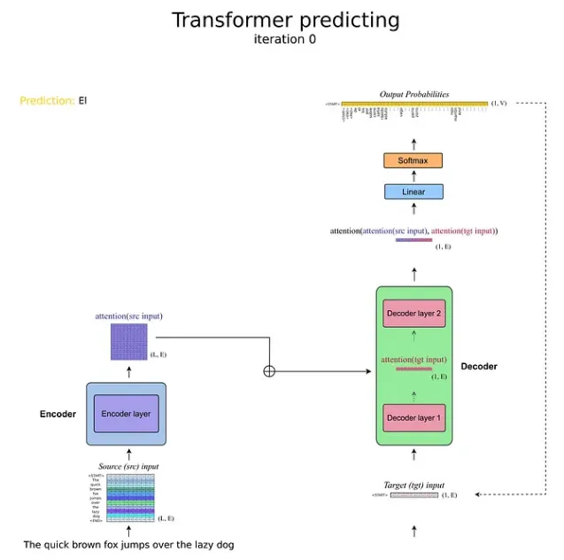 相反,在预测阶段,没有目标输入序列来提供给 Transformer(如果我们已经知道翻译的句子,我们就不需要深度学习模型来进行文本翻译)。那么,我们输入什么作为目标输入呢?
