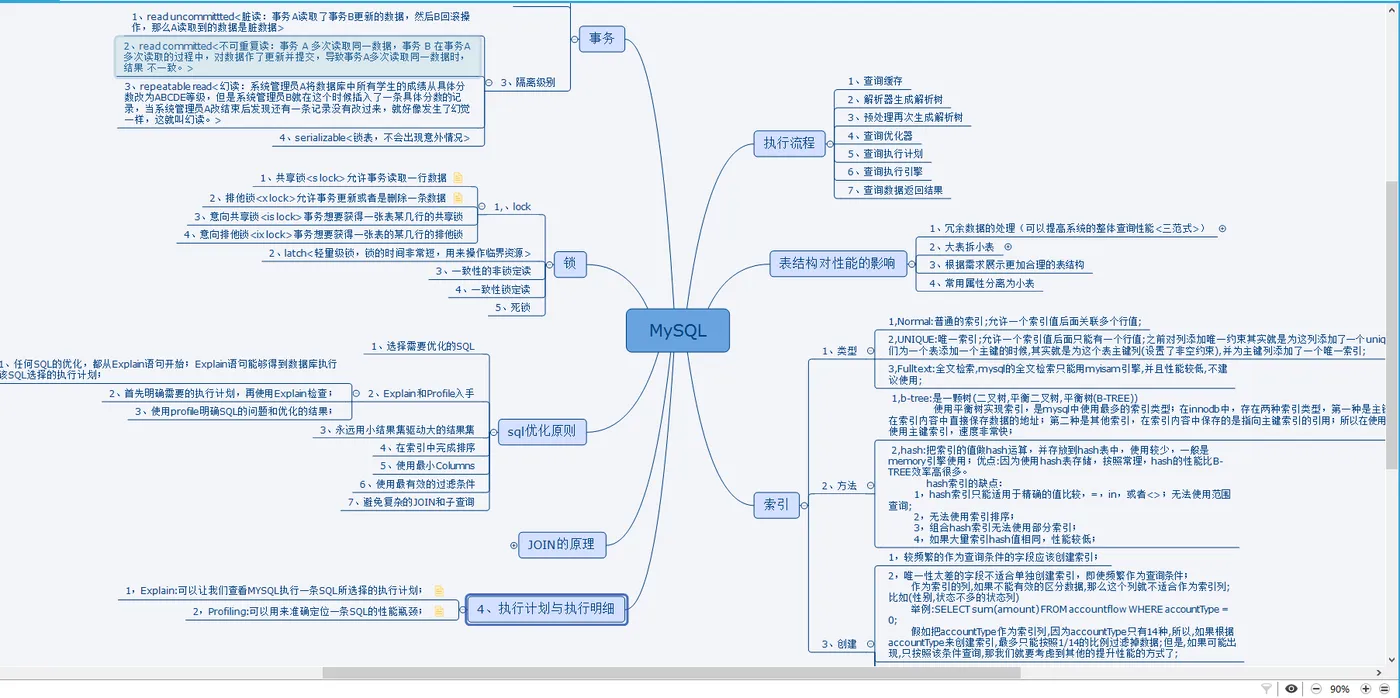 对于MySQL的梳理,我也特整理了这么一个结构图,包含了MySQL相关的主要核心知识,真正做到了一目了然: