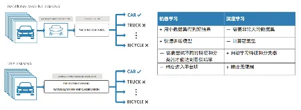 深度学习是一种特殊的机器学习形式。机器学习工作流程起始于从图像手动提取的相关特征。然后使用这些特征创建对图像中的对象进行分类的模型。在深度学习工作流程中,自动从图像提取相关特征。此外,深度学习还执行“端到端学习”,即为网络提供原始数据和分配要执行的任务(如分类),而神经网络学习如何自动执行此操作。另一个主要区别是深度学习算法会随数据发散,而浅层学习则会收敛。浅层学习是指当您向网络添加更多示例和训练数据时,在一定性能水平上趋于稳定的机器学习方法。深度学习网络的一个主要优势在于,随着数据量增加,它们经常会持续改进。