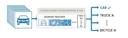 使用机器学习,您手动提取图像的相关特征。使用深度学习,您将原始图像直接馈送给深度神经网络,该网络自动学习特征。