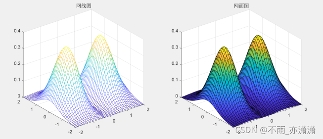clear all, close all; x=-2:0.1:2; y=x; [X,Y]=meshgrid(x,y); Z=X.^2 .* exp(-(X.^2 + Y.^2)); mesh(X,Y,Z); title('椭圆抛物面网线图') figure(2) surf(X,Y,Z); title('椭圆抛物面网面图')