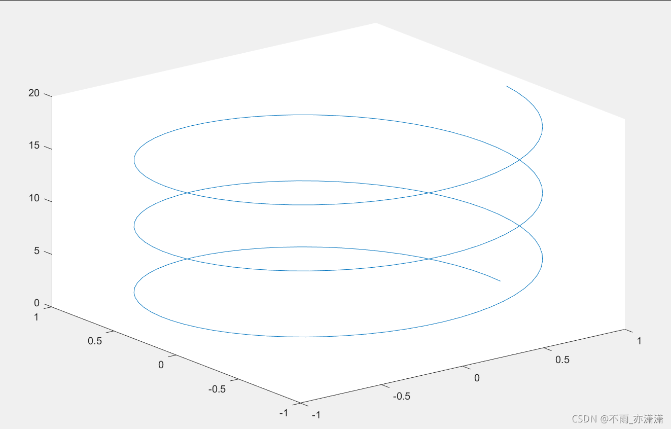 z=0:0.1:6*pi; x=cos(z); y=sin(z); plot3(x,y,z);