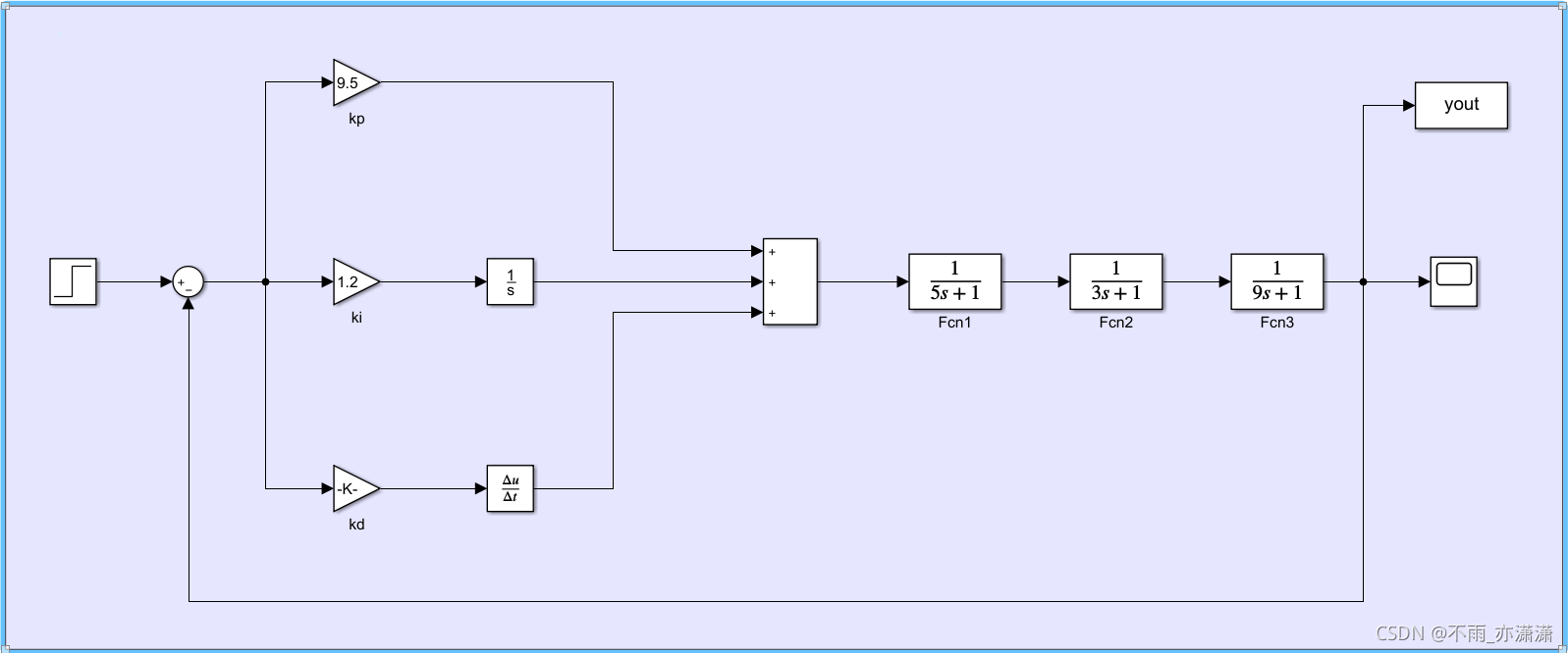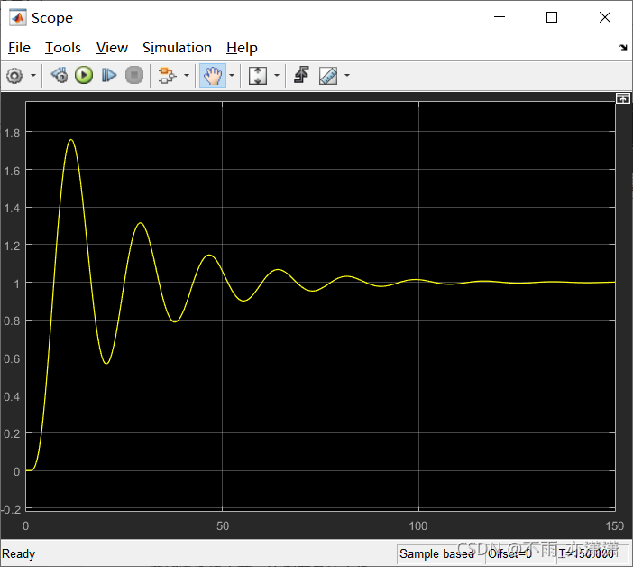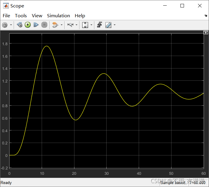 t > 0 时,输入为1,经过PID控制,输出结果趋于1(Stop time/60)