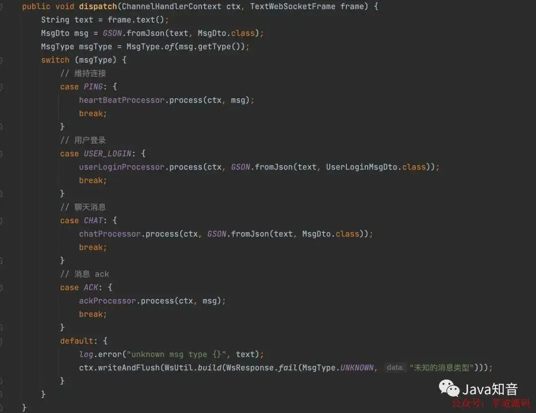 示例代码如下图所示,WsMsgDispatcher.dispatch