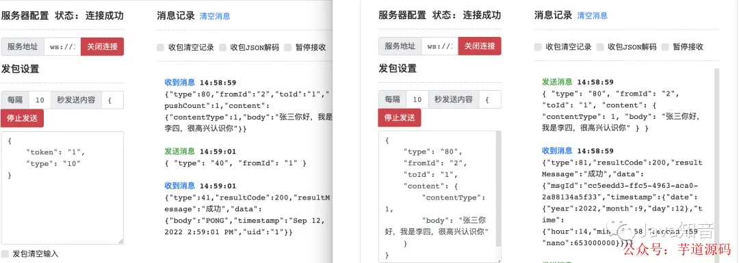 1、前端每10秒发送一次心跳消息,报文如下所示: