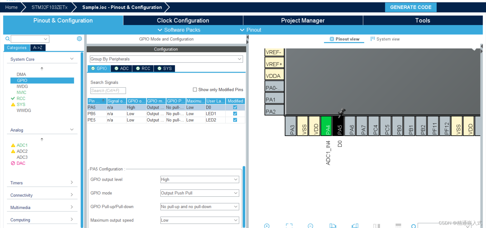 光敏电阻的使用其实就是ADC采样的使用,大家如果不熟悉ADC采样的话可以看我前面的文章:ADC采样