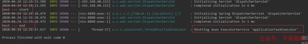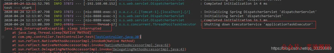 test — end被执行了,不过在停止线程池的时候还是调用了线程的interrupt方法,导致sleep报错,这三种方式都可以比较优雅的停止springboot服务,如果我项目中存在线程休眠,我希望10秒以后再停止服务可以吗?肯定是可以的,我们只需要稍微做点修改就可以了。