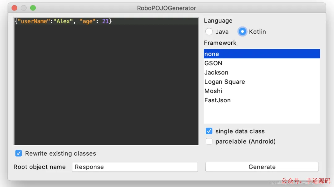 RoboPOJOGenerator—JSON (GsonFormat也可以,但是好久没更新过了)