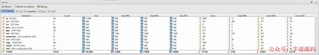 可以非常直观地看到你的项目中所有类型的文件的信息