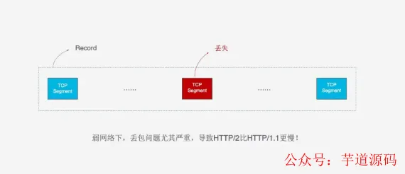 不仅如此, 由于HTTP/2必须使用HTTPS, 而HTTPS使用TLS协议也存在队头阻塞问题. TLS基于Record组织数据, 将一对数据放在一起加密, 加密完成后又拆分成多个TCP包传输. 一般每个Record 16K, 包含12个TCP包, 这样如果12个TCP包中有任何一个包丢失, 那么整个Record都无法解密.
