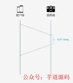 TCP计算RTT时没有考虑接收方接受到数据发发送方确认消息之间的延迟, 如下图所示, 这段延迟即ACK Delay. QUIC考虑了这段延迟, 使得RTT的计算更加准确.