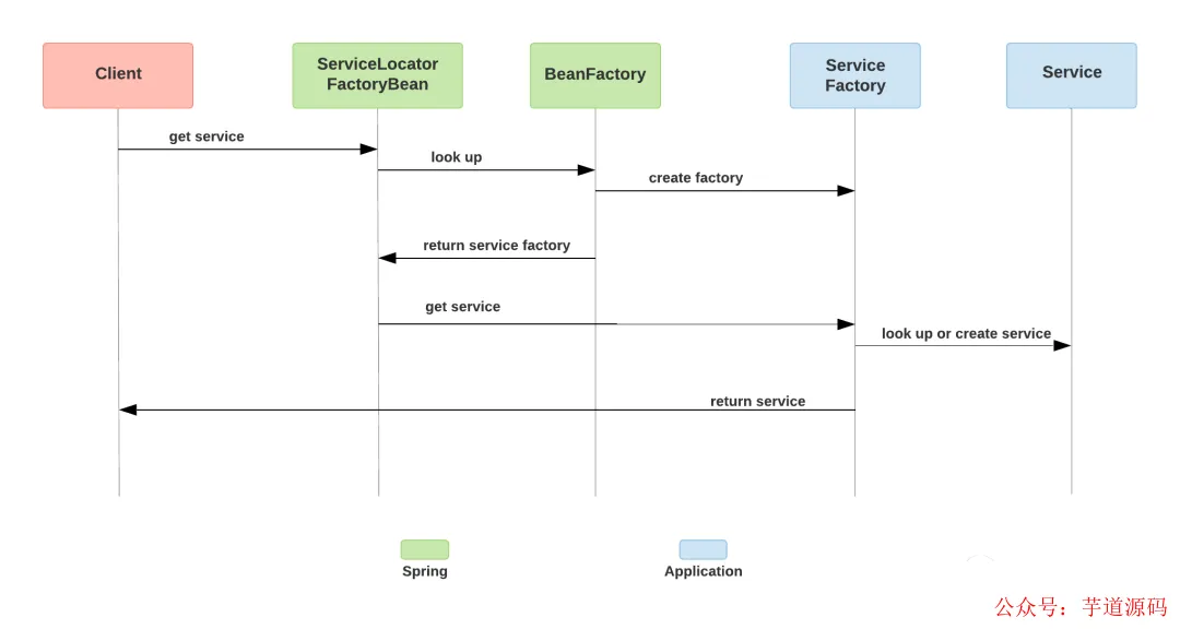 Spring 的ServiceLocatorFactoryBean实现了 FactoryBean接口,创建了Service Factory服务工厂Bean。