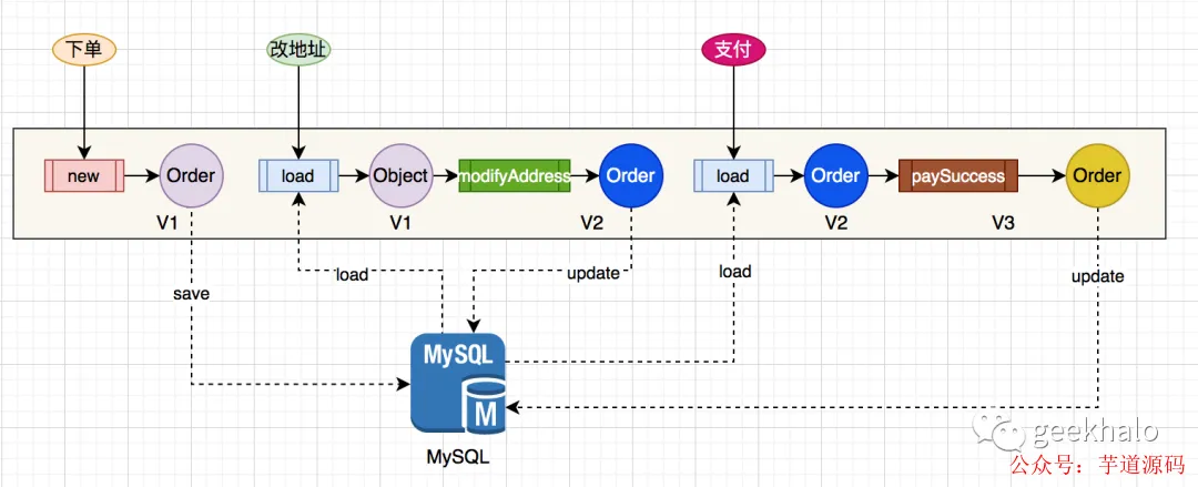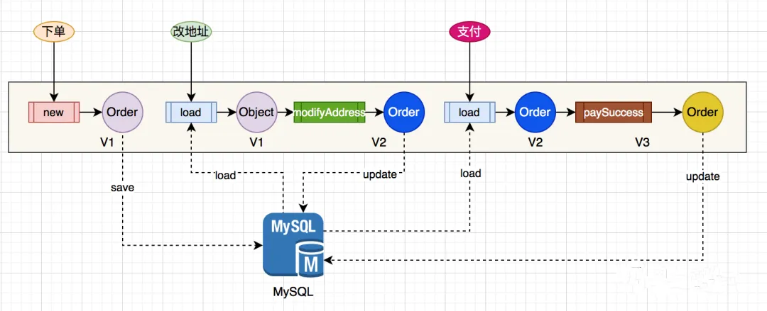 - 接收到业务操作,需执行load,从 DB 加载数据到内存 并对 Order 对象的状态进行恢复