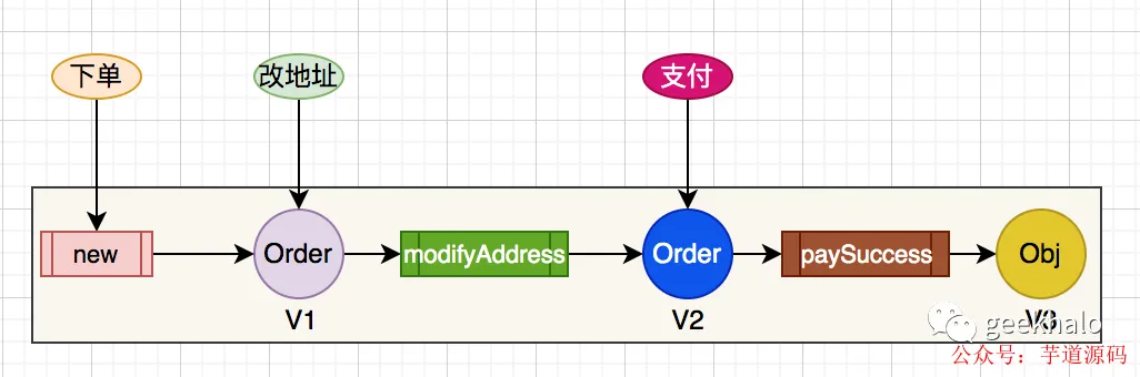 modifyAddress方法,Order 从原来的 V1 变成 V2; - 用户完成支付后,调用 Order 对象的
