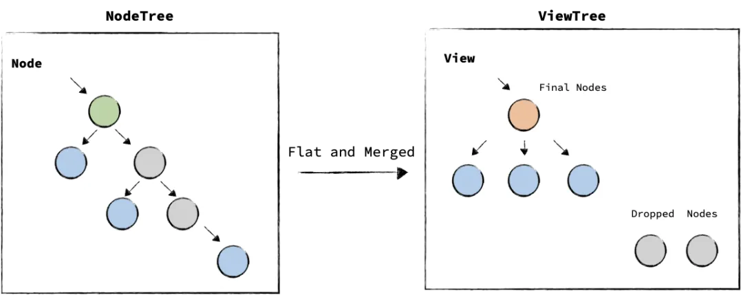 除了核心链路,GaiaX中还有一些细节点值得挖掘,下面我们看看节点树计算逻辑、视图层级合并逻辑、文本自适应逻辑是如何处理的。
