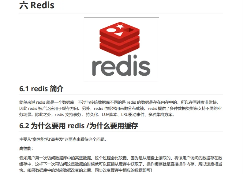 - 6.2 为什么要用redis /为什么要用缓存