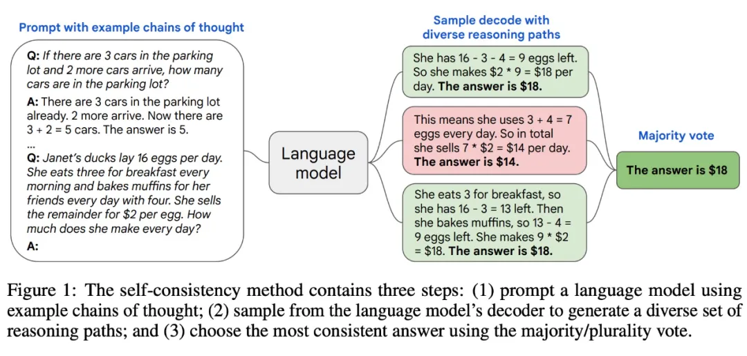 研究者提出通过一种自洽(self-consistency)方法来利用这种直觉。具体步骤如下: