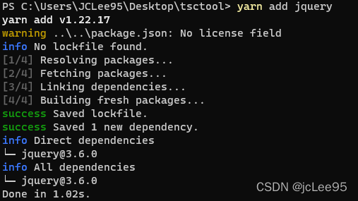 当你在一个基于TypeScript的项目中添加Jquery时,你会执行这样的命令: