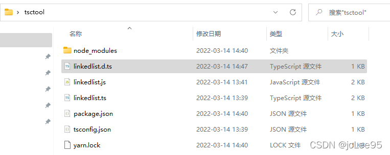 可以看到目录中自动地生成了一个linkedlist.d.ts: