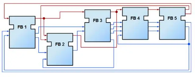 IEC 61131-1有两大问题。第一个是在您的系统中有反馈。从上面的一个功能块图,但是有一个反馈,系统的行为取决于底层软件的实现方式。第二,如果来自不同供应商的PLC,它们之间的通信不是标准化的,通常很难实现。