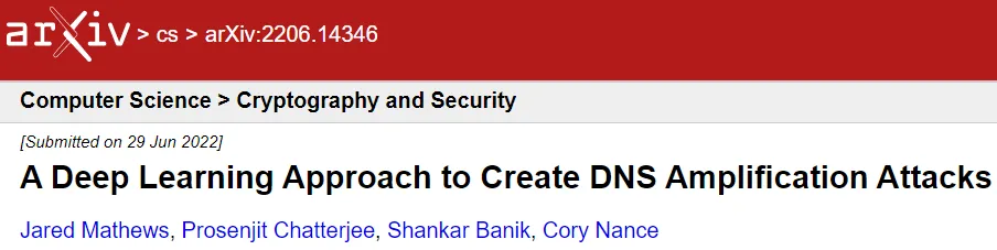 结语在这项研究中,研究人员提出了一个 RNN 来训练 DNS 放大数据。EAD 和 TextAttack 算法被应用于这个模型来欺骗它。根据它们与网络流量数据的性能以及它们保存数据性质的程度,对这两种算法进行了评估和比较。结果表明,欺骗机器学习 NIDS 是可能且相对容易的,这再次证实了这些深度学习算法很容易受到对抗性学习的影响。可以使为图像处理或 NLP 创建的对抗算法适应网络分类器。虽然这些算法能够扰乱网络流量数据,但它们不一定能制作出真实的数据包,从而导致未来开发一种纯粹用于网络流量分类器的新对抗算法。研究人员发现 TextAttack 算法可以产生 100% 几率欺骗模型的 AE。EAD 算法的 AE 有 67.63% 的机会欺骗模型。TextAttack 算法的扰动率为 24.95%,EAD 算法对数据包的扰动率为 200%。未来的目标是创建一种新的对抗性攻击,专门针对网络流量分类器的攻击而设计,并通过对抗性学习和训练蒸馏来实施防御。该团队未来的下一个目标是将在 DNS 放大分类器上所做的工作应用于 IoT DDoS 攻击。特别是针对许多物联网设备使用的受限应用协议(CoAP)的 DDoS 攻击。这将包括创建一个类似于来自 CoAP 流量(包括恶意数据包)的 KDD 的数据集。然后,这将应用于使用 NIDS 对 IoT 环境进行的真实世界模拟。论文链接:https://arxiv.org/abs/2206.14346相关报道:https://techxplore.com/news/2022-07-deep-technique-dsn-amplification.html