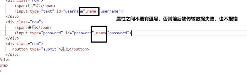 11.js中from表单属性之间不要加逗号,否则前后端数据传输失败,也不会报错