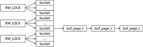 RW_LOCK :并发互斥量,用于保护bucket 和hash 链的并发访问,默认每个缓冲区实例16 个互斥量,每个互斥量保护一段范围内的hash 桶及其hash 链;