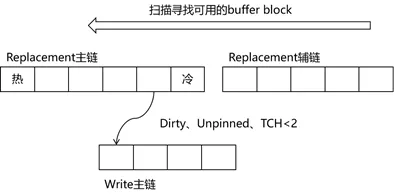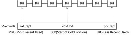 replacement list(主链)分为冷区和热区,本指针指向链中的某个buffer header,在buffer header前面为热区,后面为冷区 |
