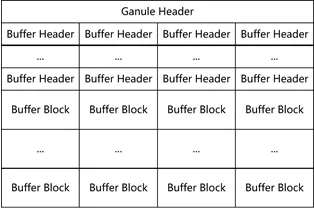 图7.2-2给出了db cache缓冲区中单个granule内存块中的组成,总体包括granule header、buffer header和buffer block三个部分: