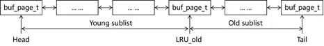 LRU_old :在buf_pool_t 结构中,指向LRU List 的冷热分界位置。Head 与LRU_old 之前的部分称为Young sublist ,为热数据。LRU_old 与Tail 之间的部分称为Old sublist ,为冷数据。Young sublist 和Old sublist 之间的page 数比例可以通过配置项innodb_old_blocks_pct 配置,默认为63:37 ;