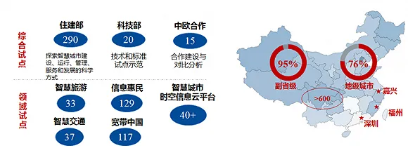 中国以政策先行,多层次多领域推动“智慧城市”试点示范建设。