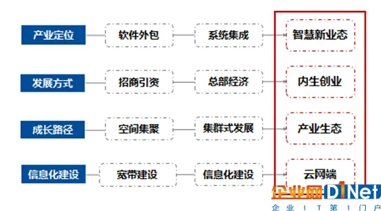 智慧城市专业园具有四大特征:基于产业定位的智慧新业态,基于发展方式的内生创业,基于成长路径的产业生态,基于信息化建设的云网端。