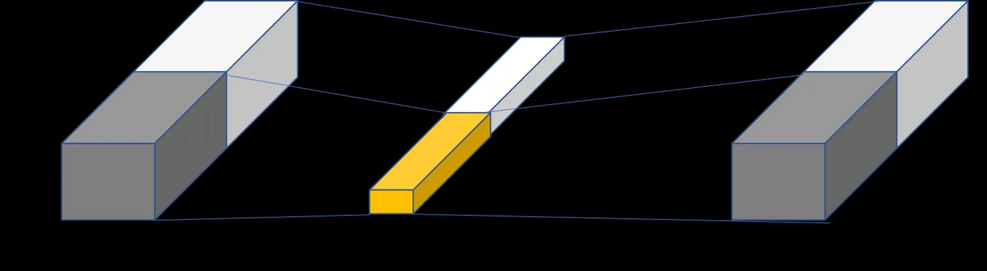 对于尺寸为 $H_1\times{W_1}\times{C_1}$ 的输入矩阵,当标准卷积核的尺寸为 $h_1\times{w_1}\times{C_1}$ ,共有 $C_2$ 个标准卷积核时,标准卷积会对完整的输入数据进行运算,最终得到的输出矩阵尺寸为 $H_2\times{W_2}\times{C_2}$ 。这里我们假设卷积运算前后的特征图尺寸保持不变,则上述过程可以展示为 图1 。
