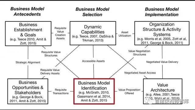 Massa、Tucci和Afuah(2017)对之前的商业模式研究进行了批判性评估,并确定了构成商业模式的三种观点:1)描述业务的认知/语言模式和相互理解;2)业务模型通用组件的形式化表示/描述;3)关注真正的公司具有的竞争优势和卓越表现。他们思考了为什么会有多种观点,以及商业模式和战略之间的关系,并指出价值创造和获取的传统理论偏向于供应方。客户-提供者价值共同创造的概念是当前需求侧的一个积极讨论的话题(例如,Gronroos & Voima, 2013)。Spieth和合著者(2014)在商业模式创新的背景下也做了类似的观察:首先,解释业务以支持战略发展;其次,代表企业的经营模式,追求效率;第三,通过探索新的机会和可持续竞争优势的来源来发展企业。
