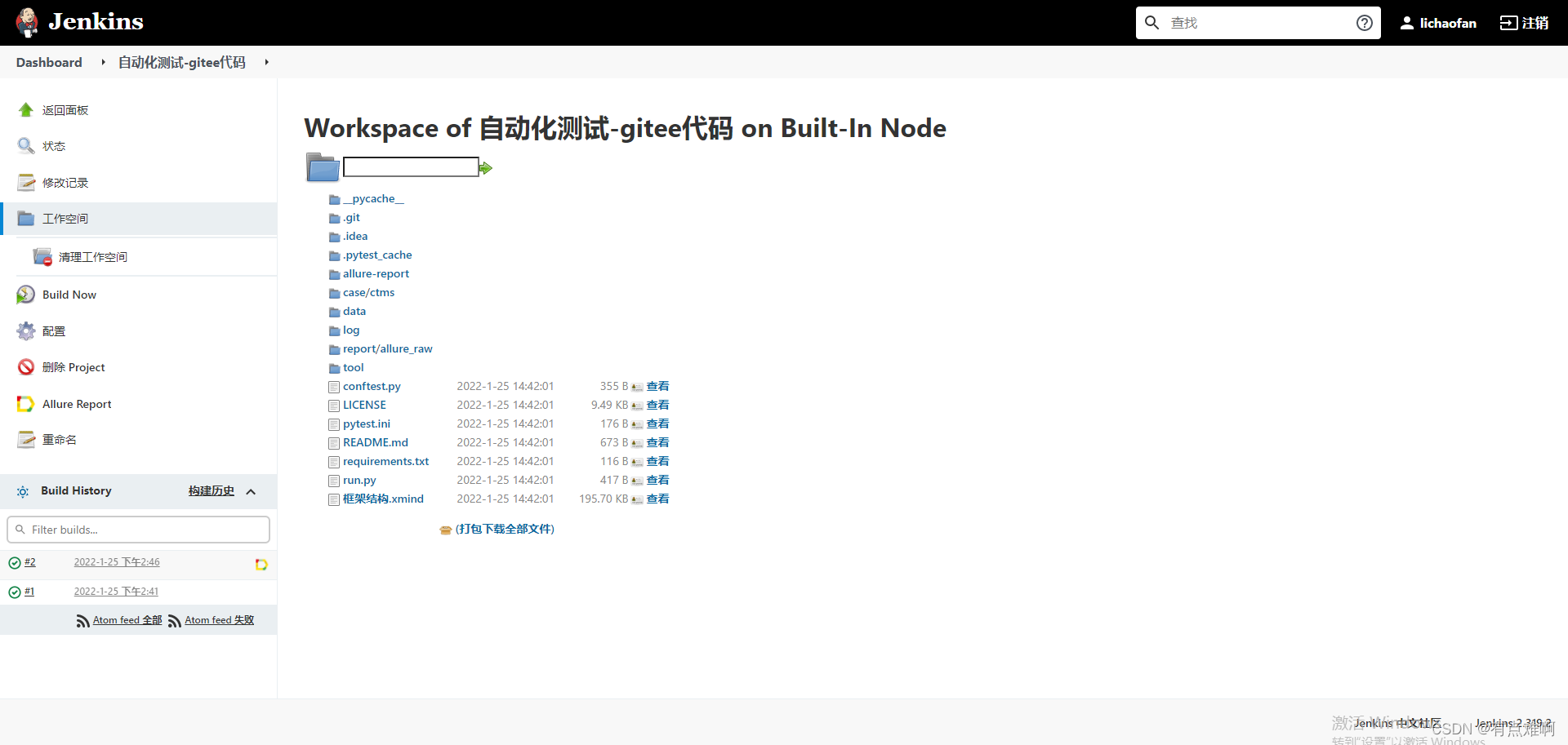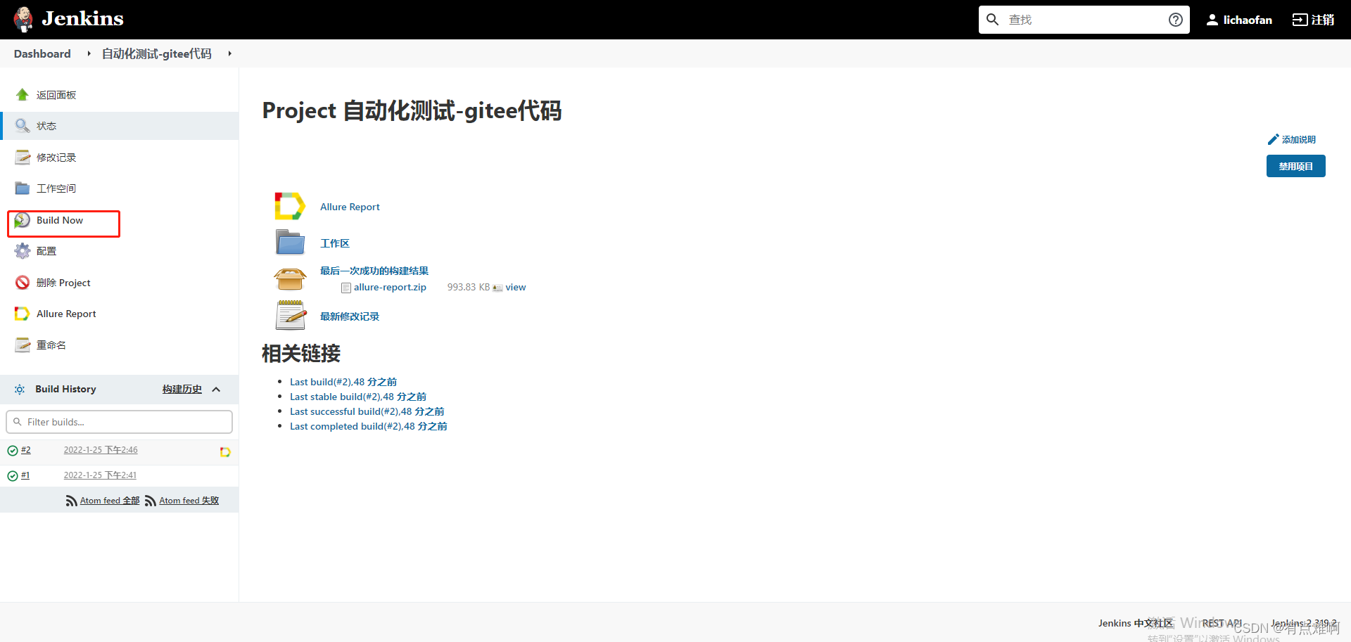 点进去一个,手动发起构建,我这个是已经生成过报告的和第一次有点区别