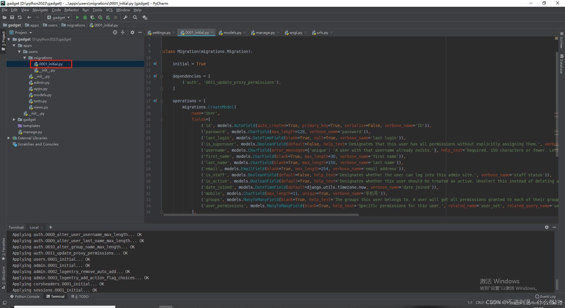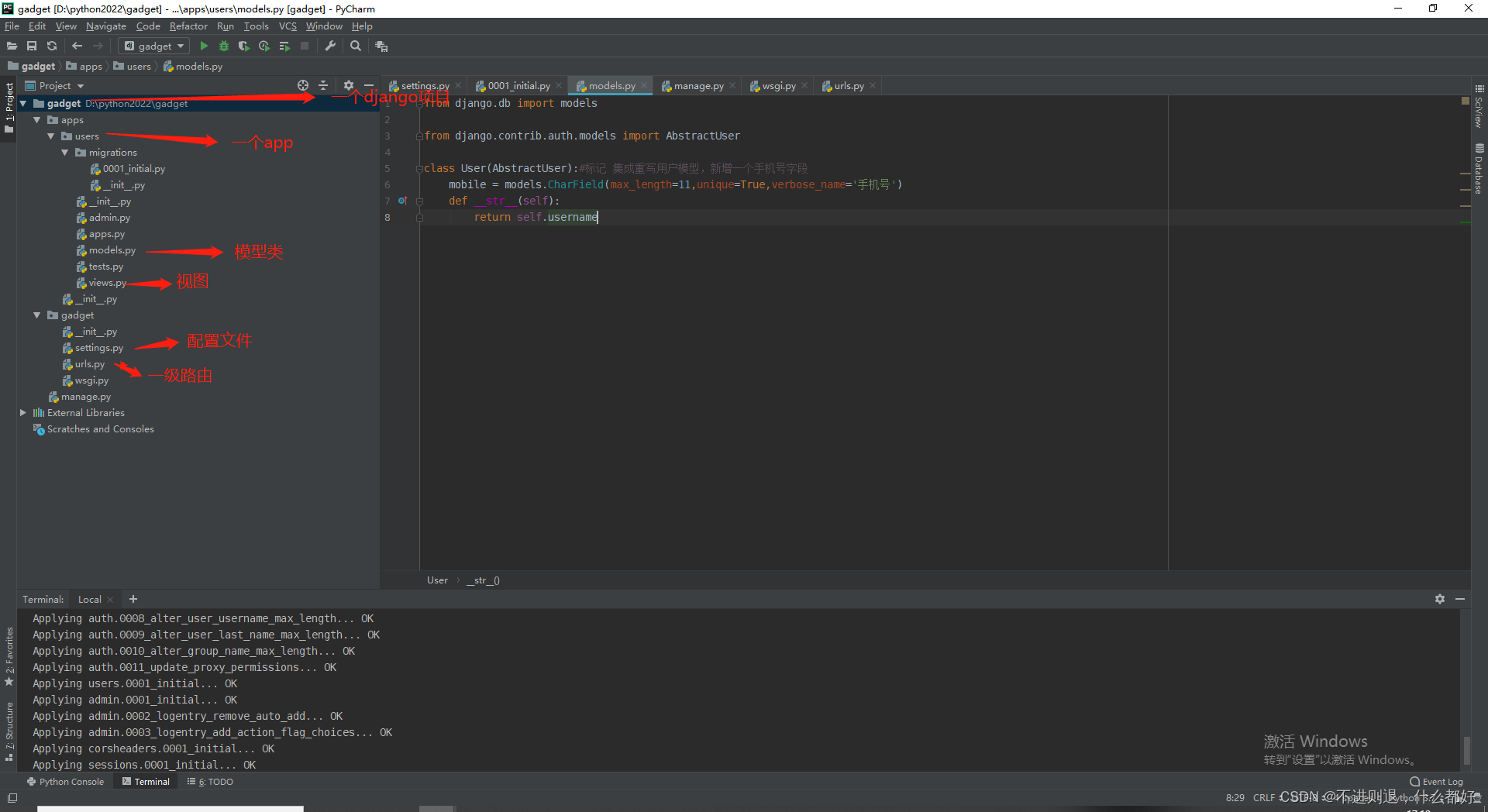先在根目录下创建apps包用来存放所有的app,可以在apps目录下创建app或者在根目录下创建后移到apps下面