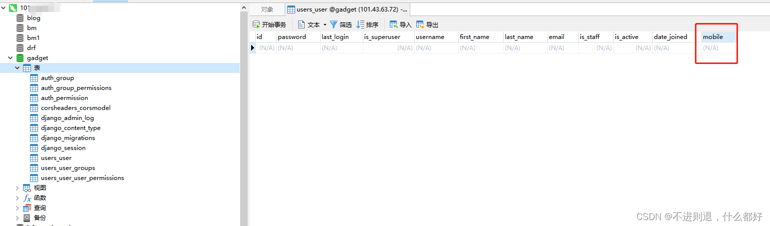 注意:mysql的数据库需要提前建立也就是NAME需要先创建一个名字为gadget的数据库