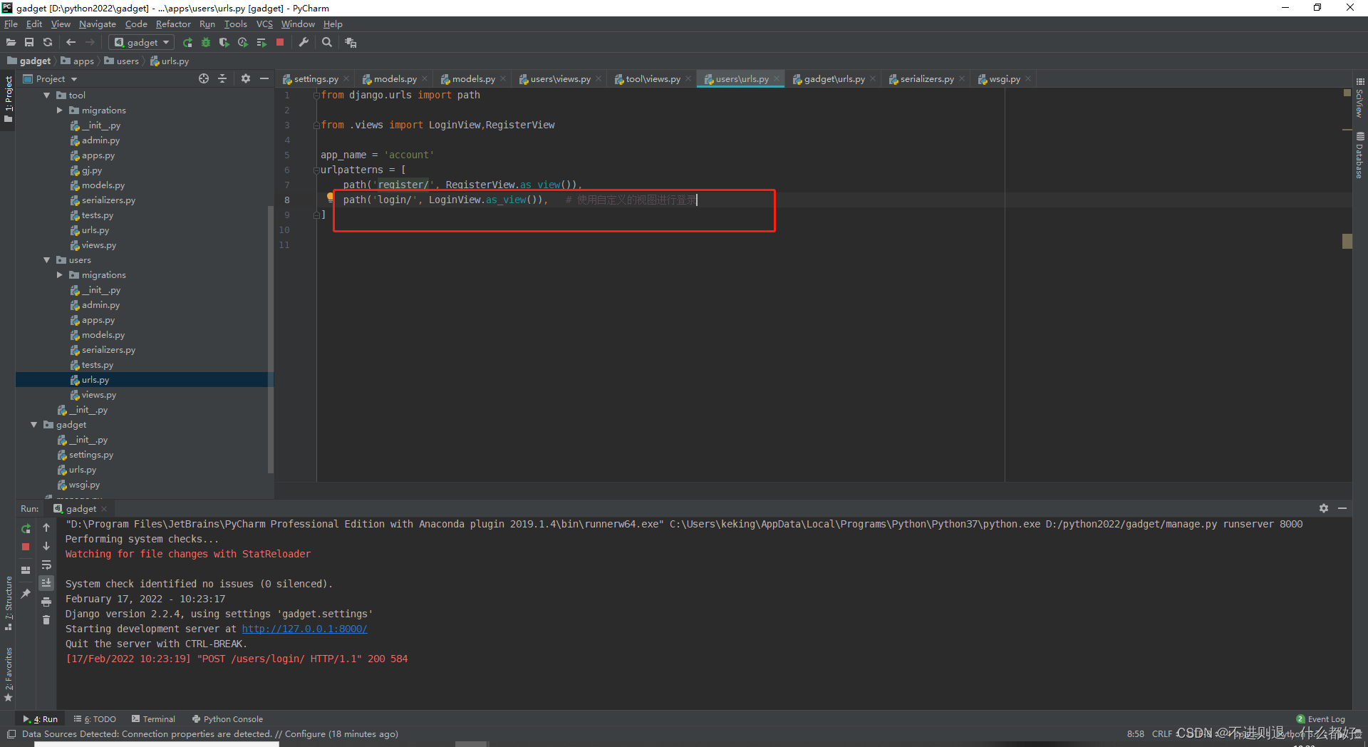 配置一级路由gadget.urls.py