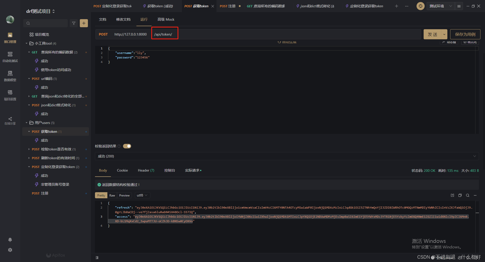 测试djangorestframework-simplejwt定制