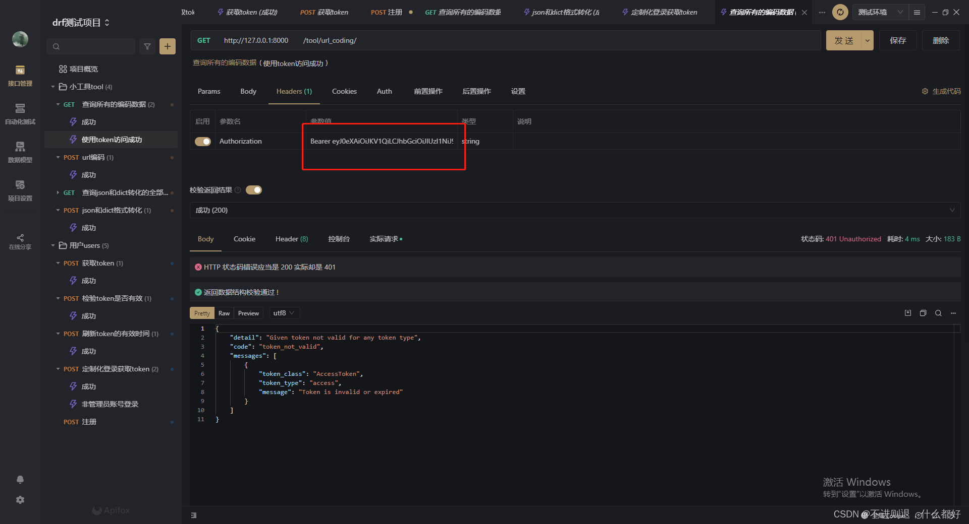测试失效的token