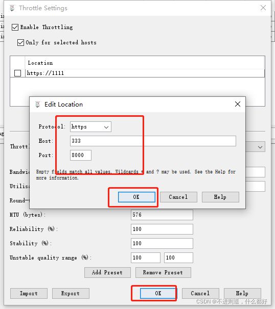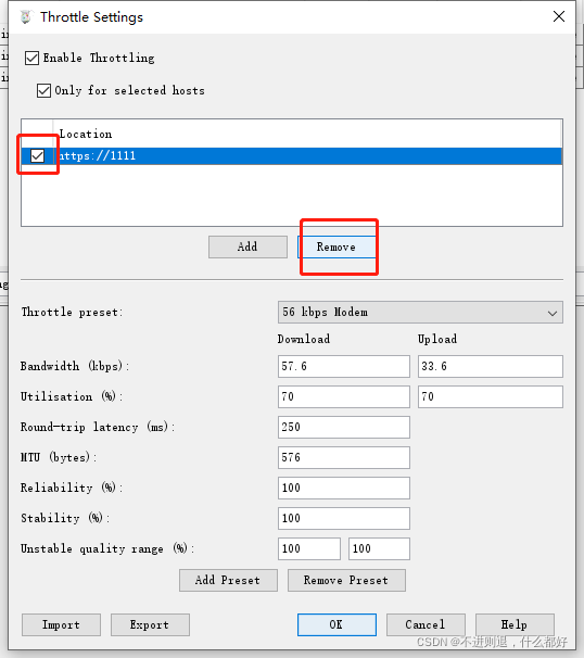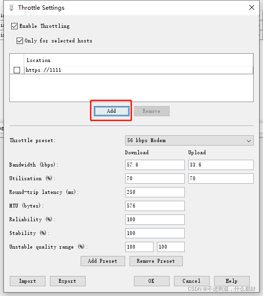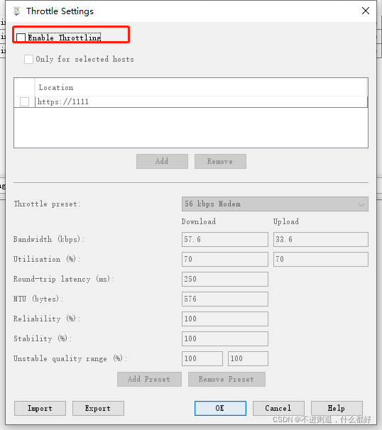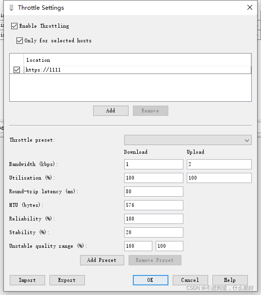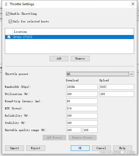 这都是charles自带的设置好的网络设置,不同的选择会让下面各种参数的设置会发生变化
