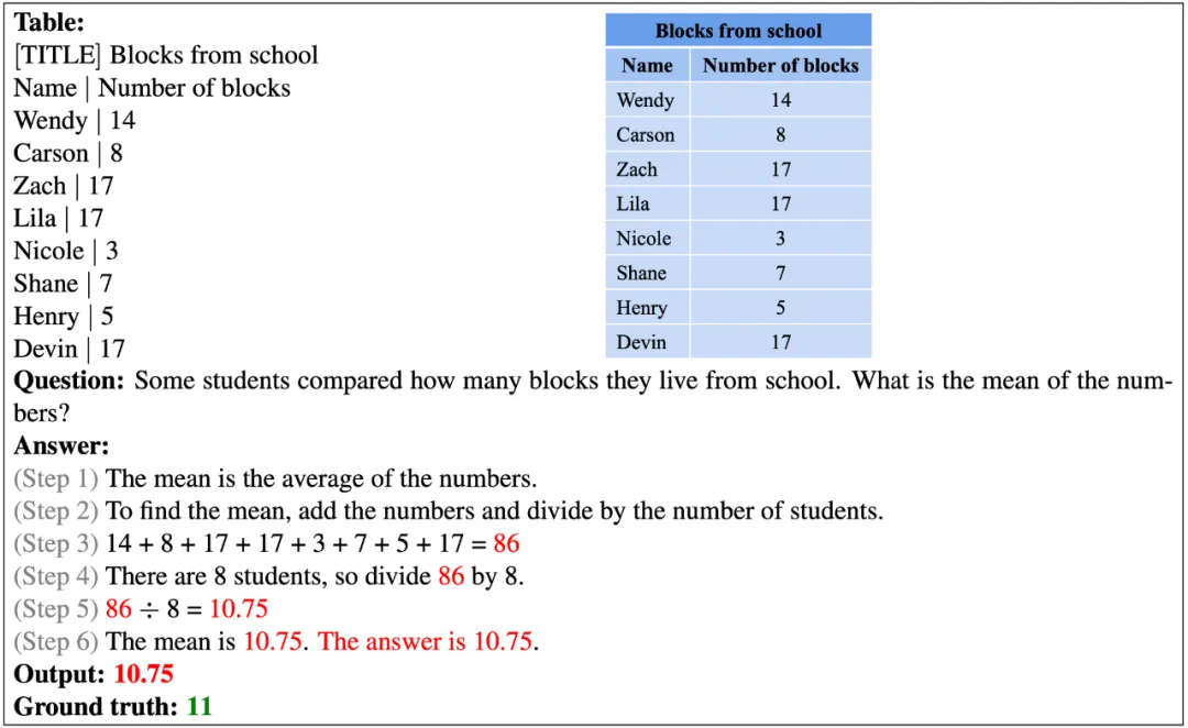以下的例子中,模型很难准确完成一长串数字的算术运算。