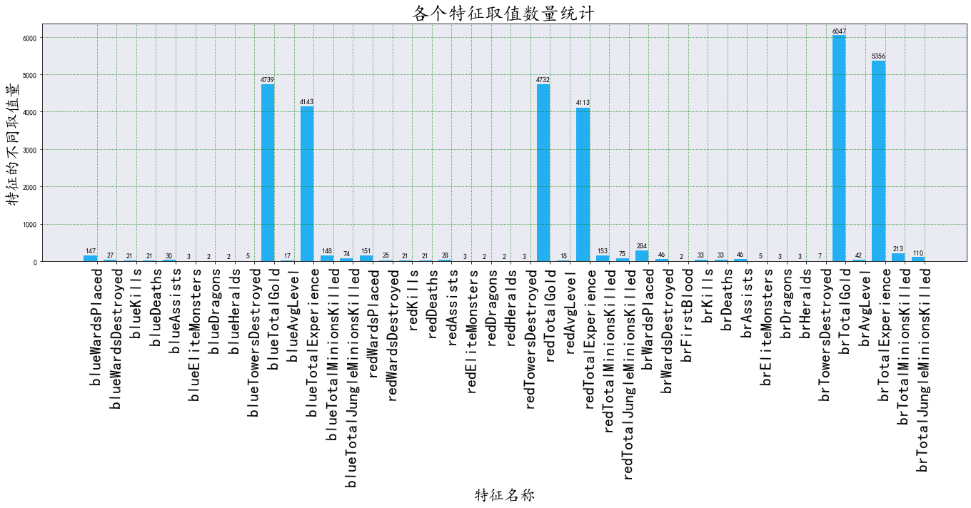 drop_features = ['blueGoldDiff', 'redGoldDiff', 'blueExperienceDiff', 'redExperienceDiff', 'blueCSPerMin', 'redCSPerMin', 'blueGoldPerMin', 'redGoldPerMin'] # 需要舍去的特征列 df = data_df.drop(columns=drop_features) # 舍去特征列 info_names = [c[3:] for c in df.columns if c.startswith('red')] # 取出要作差值的特征名字(除去red前缀) for info in info_names: # 对于每个特征名字 df['br' + info] = df['blue' + info] - df['red' + info] # 构造一个新的特征,由蓝色特征减去红色特征,前缀为br # 其中FirstBlood为首次击杀最多有一只队伍能获得,brFirstBlood=1为蓝,0为没有产生,-1为红 df = df.drop(columns=['blueFirstBlood', 'redFirstBlood']) # 原有的FirstBlood可删除 df