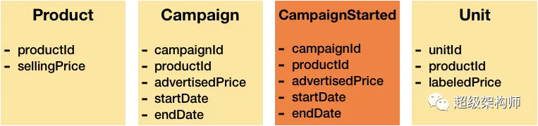 // With DDD class Campaign { ... startCampaign() { emit(new CampaignStarted(..., productId, advertisedPrice)); } }class Unit { ... onCampaignStarted(event) { labeledPrice = event.advertisedPrice; } }