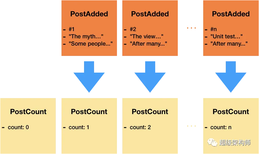 例如,您可以通过重播 PostAdded 事件来重建所有帖子。