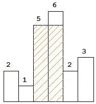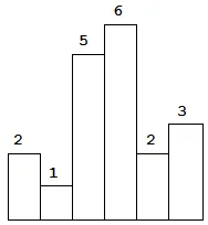 以上是柱状图的示例,其中每个柱子的宽度为 1,给定的高度为 [2,1,5,6,2,3]。