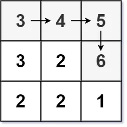 输入:matrix = [[3,4,5],[3,2,6],[2,2,1]]