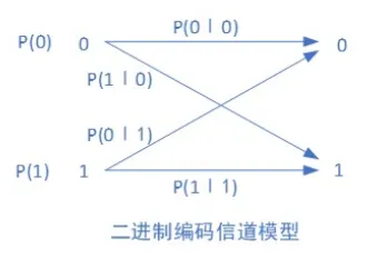 $p(0 / 0)$ 和 $p(1 / 1)$ 为正确转移概率, $p(1 / 0)$ 和 $p(0 / 1)$ 为错误转移概率 , 我们有 $p(0 / 0)=1-p(1 / 0)$ ; $p(1 / 1)=1-p(0 / 1)$ 。