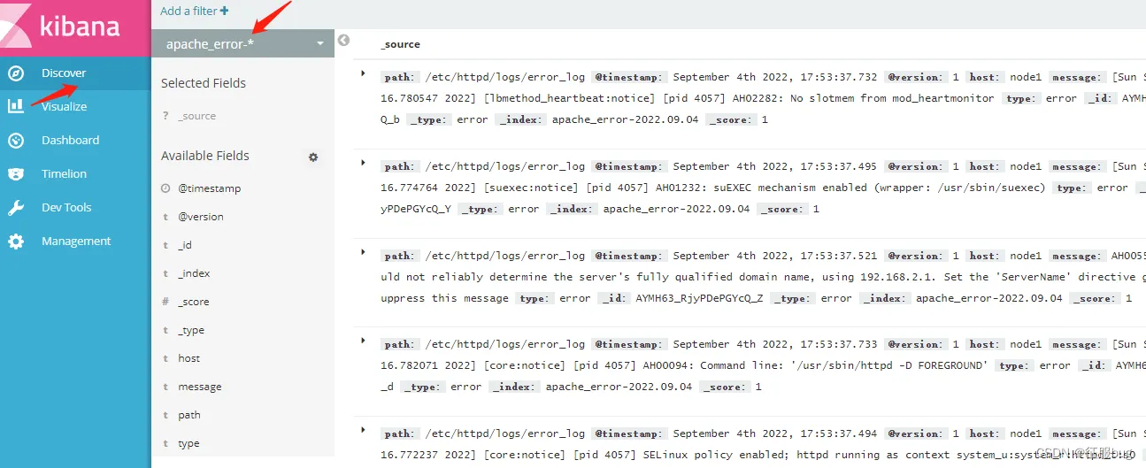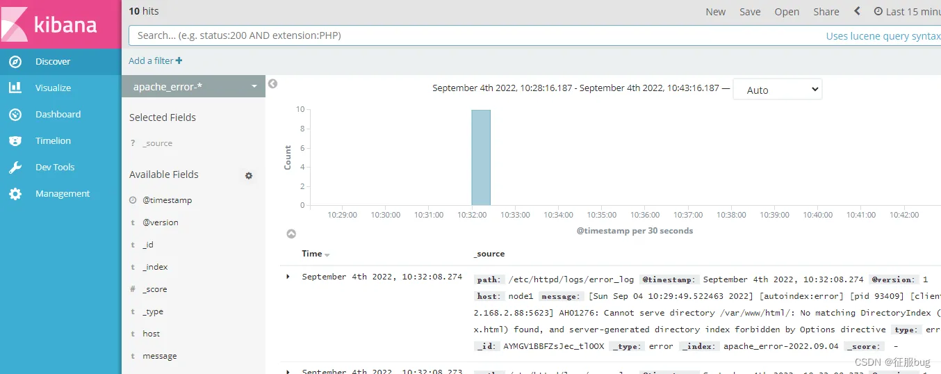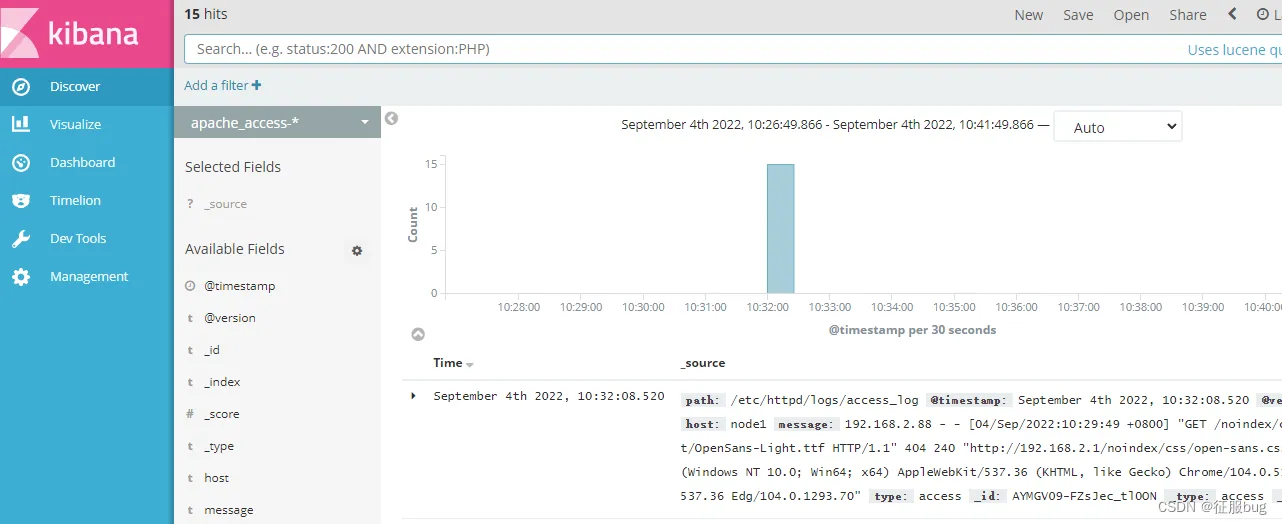 将apache服务器的日志添加到Elasticsearch并通过Kibana显示。